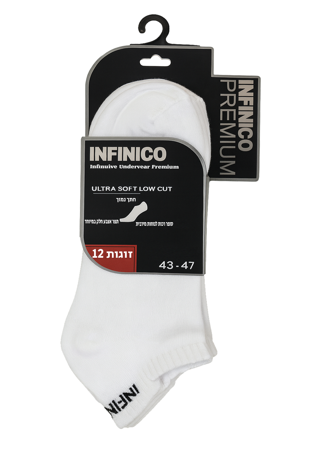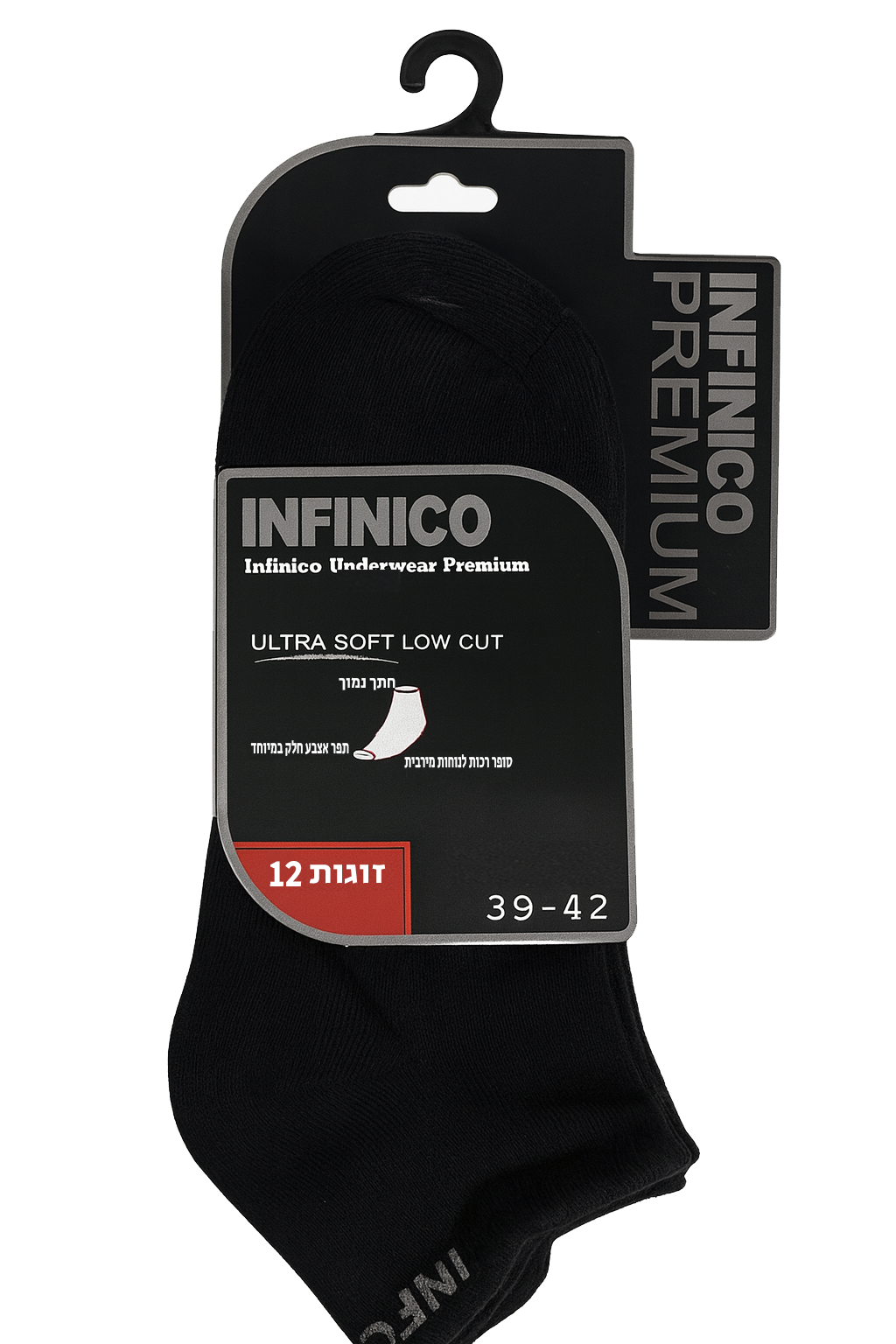 מכילה 10 בוקסרים איכותיים ו־12 זוגות גרביים קצרים בעיצוב קלאסי ונקי מבית INFINICO.
